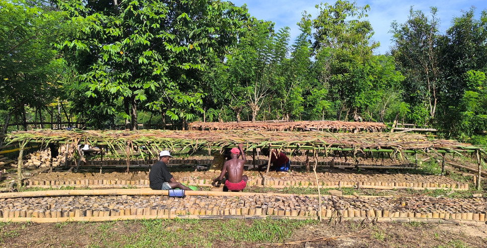 Unlike standard plastic pots produced in factories from fossil fuels, these pots create no waste and can be cracked and planted in the ground along with young trees. They also support local income.